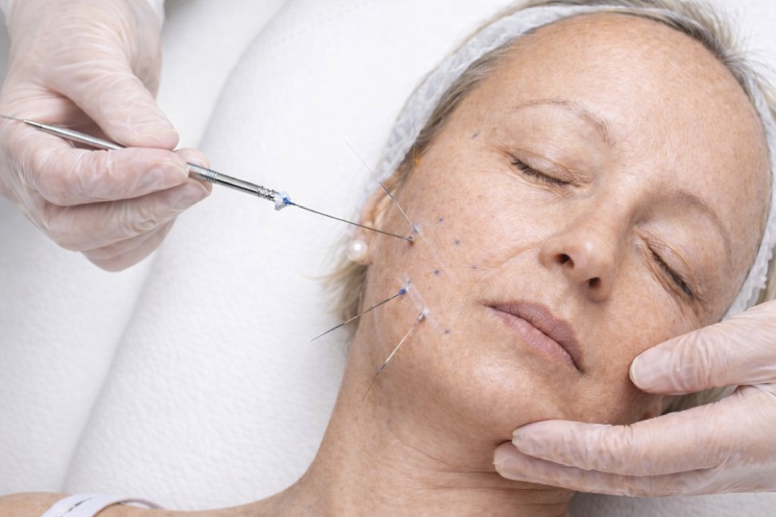 Just like HIFU, thread lifts are also non-surgical facelifts aiding in skin-tightening. In this procedure, dissolvable threads are gently inserted beneath the skin to lift sagging tissues while simultaneously stimulating collagen production. This gives a more sculpted facial profile look with improved skin tightness and youthful definition.
