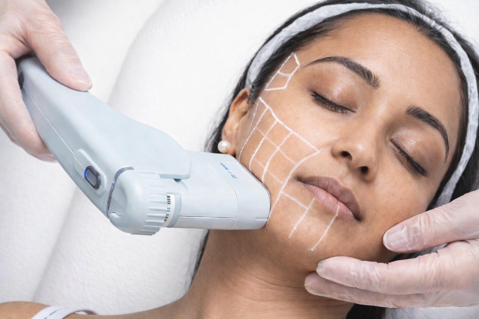HIFU is a non-surgical skin-tightening treatment that focuses ultrasound energy to penetrate deep into skin layers. It targets the foundational layer where collagen is produced and aids in natural renewal and firming of the skin, especially along the jawline, cheeks and neck areas, giving a contoured look without surgery